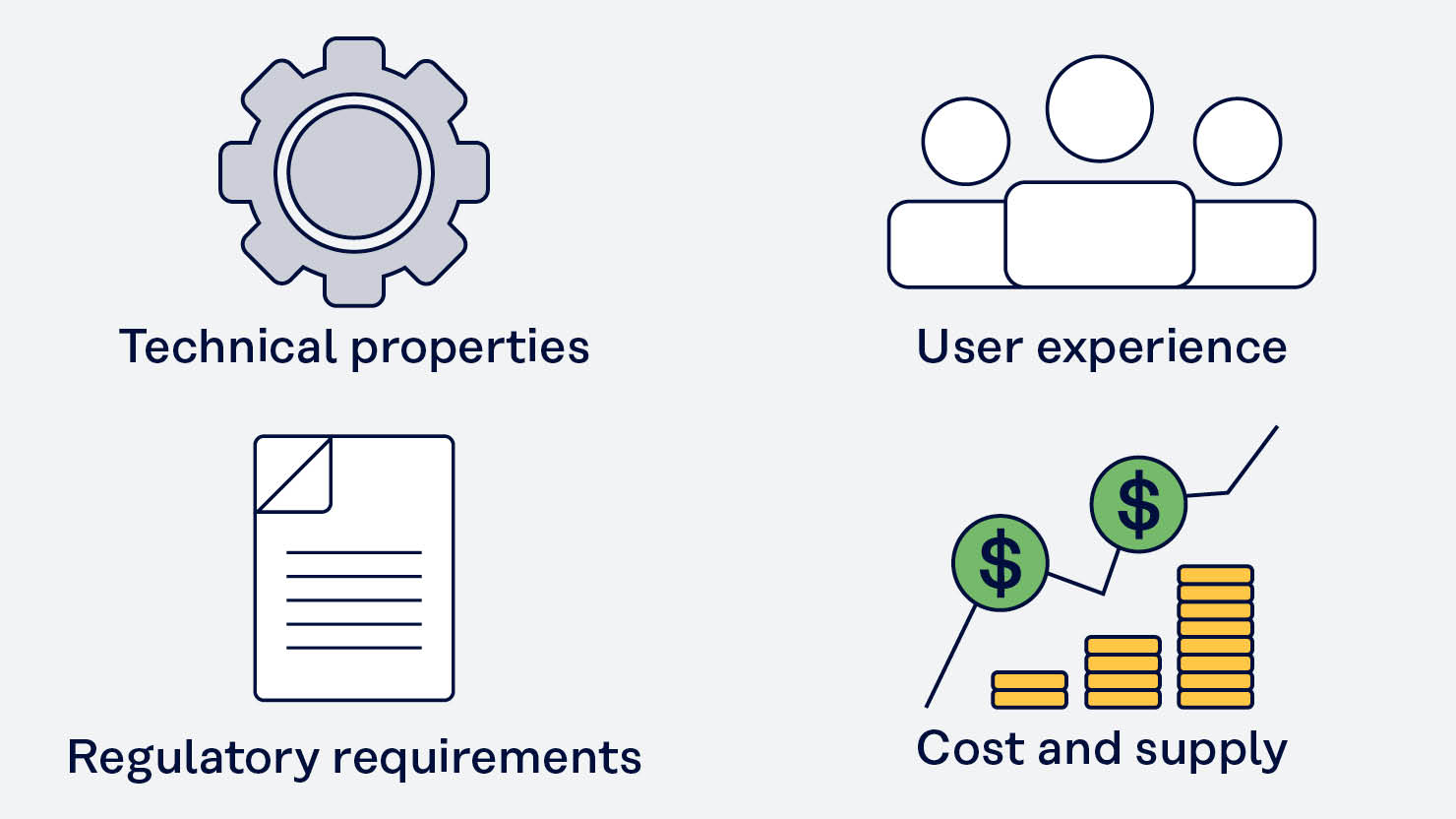 用途と市場が要求する安全性と規制の基準を決定します。最も一般的な考慮事項には、医療用途の標準 (ISO 10993 規制を含む))や対象市場の食品接触用途 (EU および FDA の要件など)が含まれます。