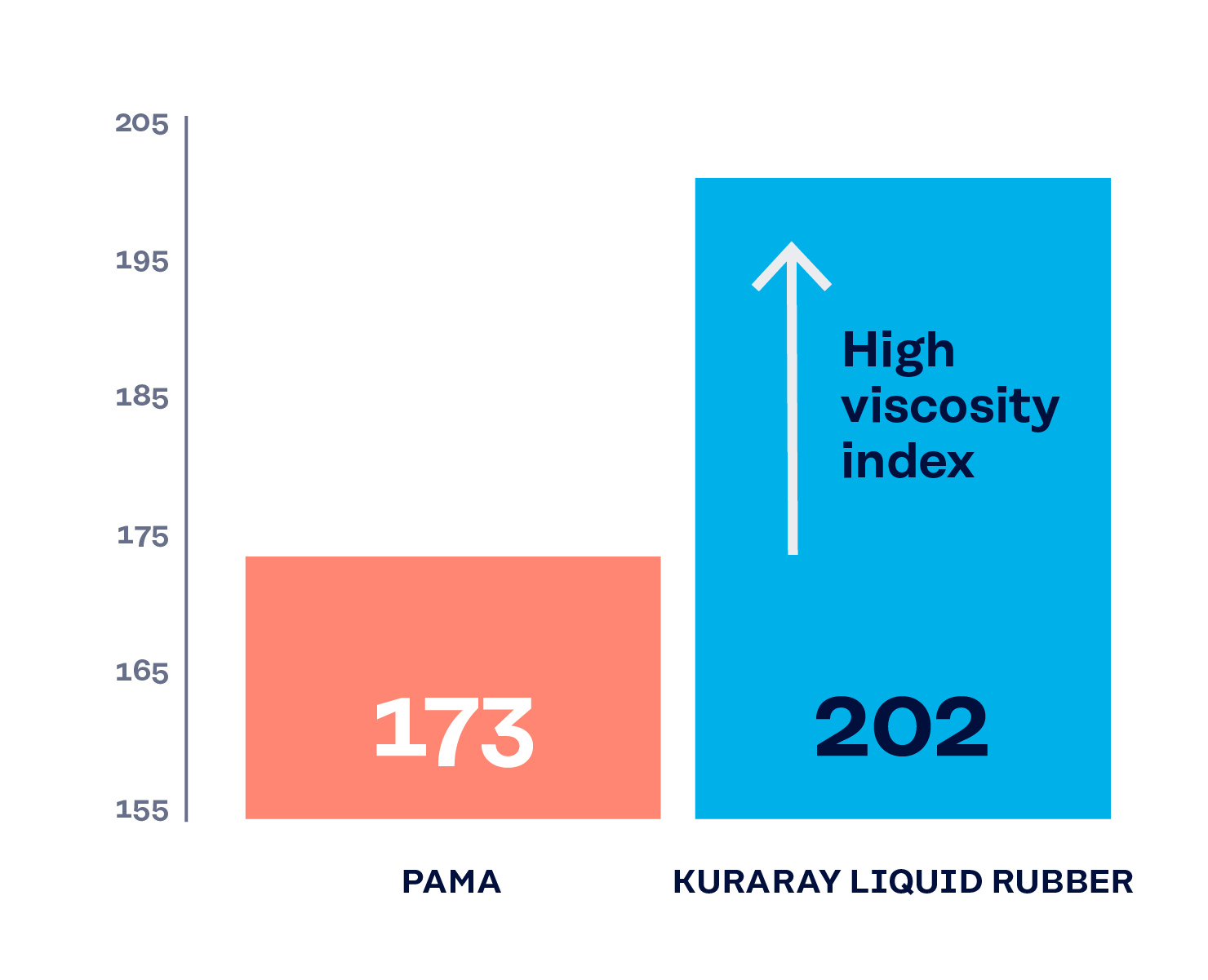 A vantagem marcante da KURARAY LIQUID RUBBER e do SEPTON™ é seus altos índices de viscosidade. Por exemplo, uma formulação de óleo de engrenagem 75W-90 incluindo KURARAY LIQUID RUBBER alcança um índice de viscosidade de 202, substancialmente maior que as alternativas convencionais, como PAMA, que normalmente alcança cerca de 173.